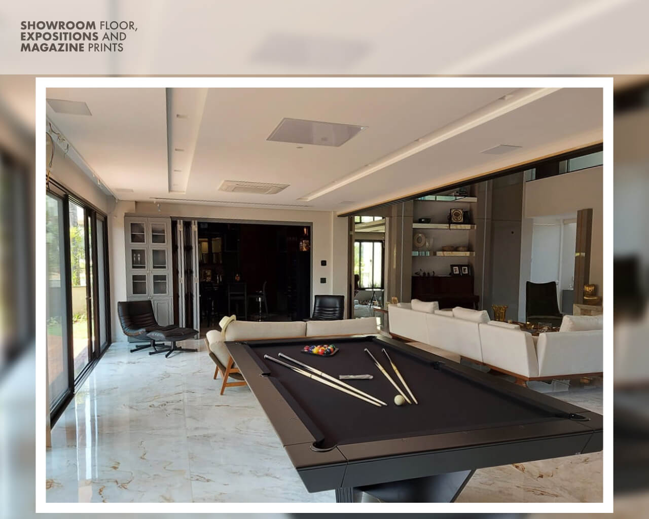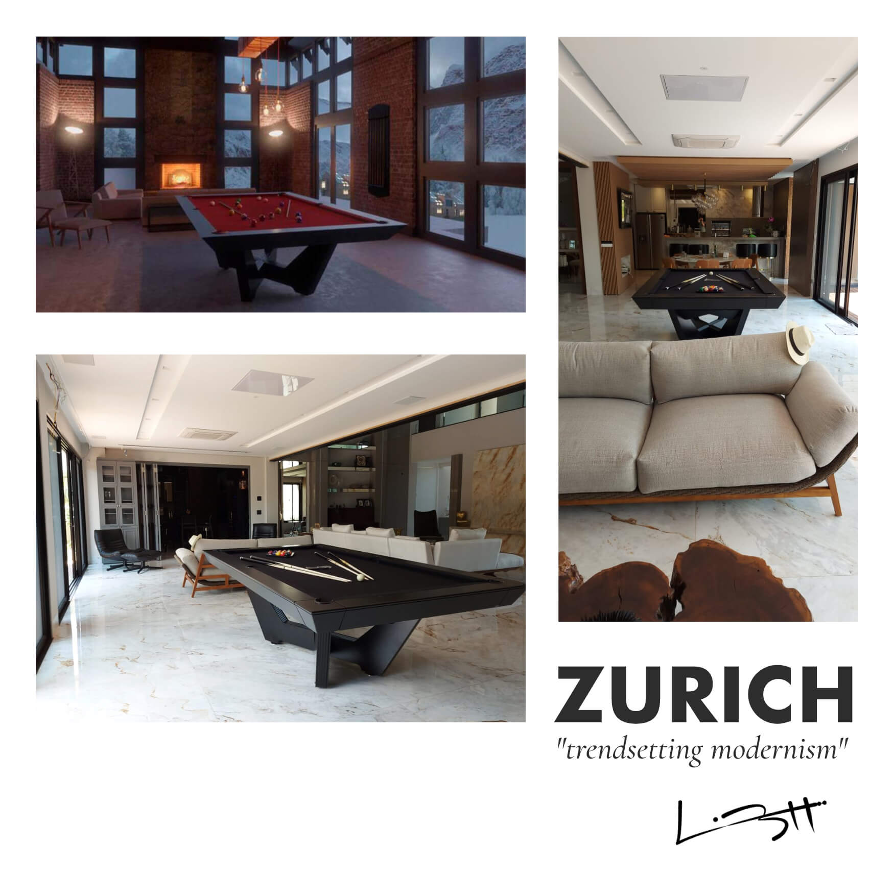 Consistently the highlight of interior design projects, the Zurich Pool Table is one of Larissa’s most trend-breaking billiards tables. This beautiful handcrafted design is enriched by the utilization of all the technology available at the partner factories. The table features a stone slate play area, adjustable ultra-resistant stainless steen feet, a robust cross section base with intricate layered detailing, laser engraved pocket detailing and Is designed for easy disassembly.
