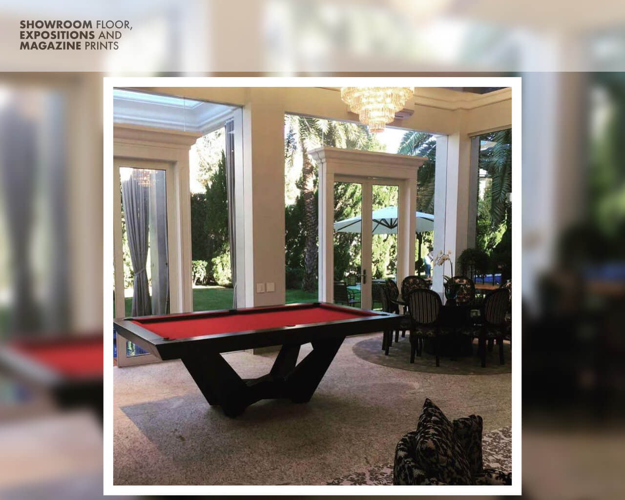 Our pool tables can be fully customized with your choice of lacquer, stain, as well as felt material and color to create your dream piece. You may also request a personalized laser engraving on the blinds (apron). We're always on standby to answer questions, send samples, and assist with custom orders.