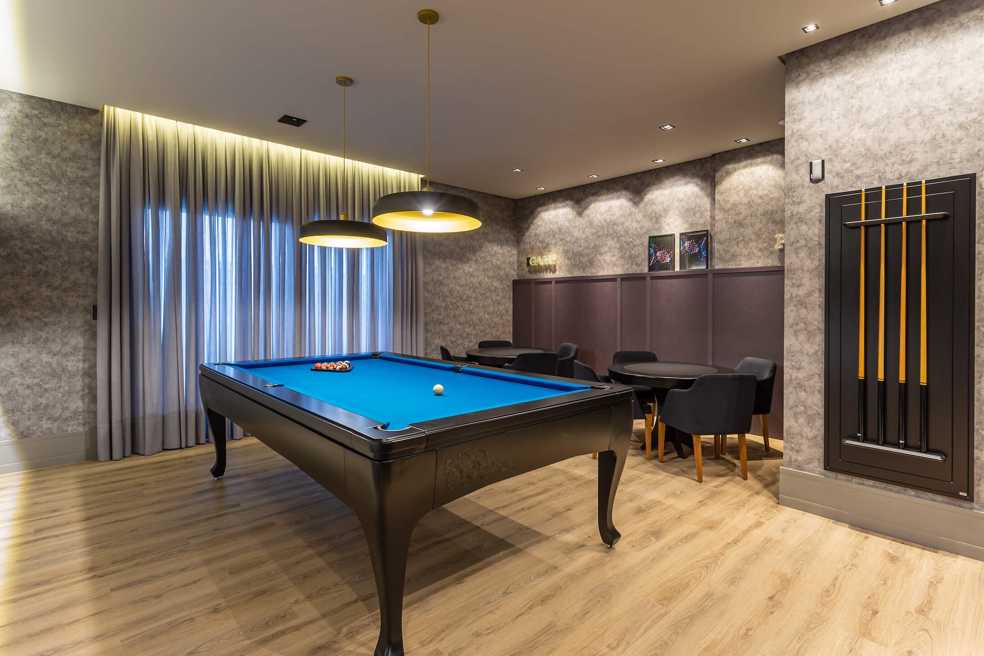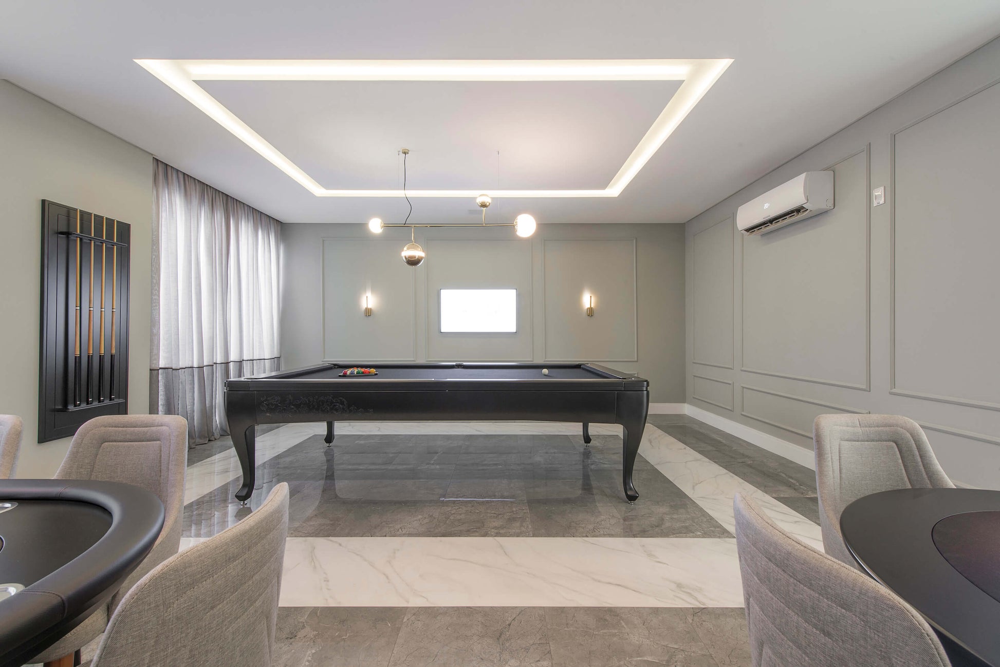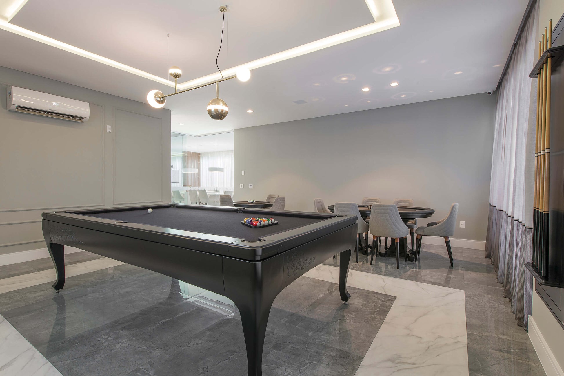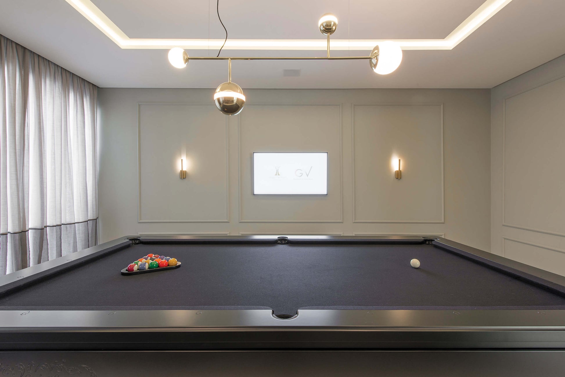 The acclaimed Milan Pool Table is Larissa's modern take on the classic shapes of indoor game table designs. Handcrafted to show-off the spotlight of luxurious movie homes, the Milan billiards table is the pinnacle of elegance and beauty. Consistent in both form and function, it boasts glamour to any modern and contemporary interior.