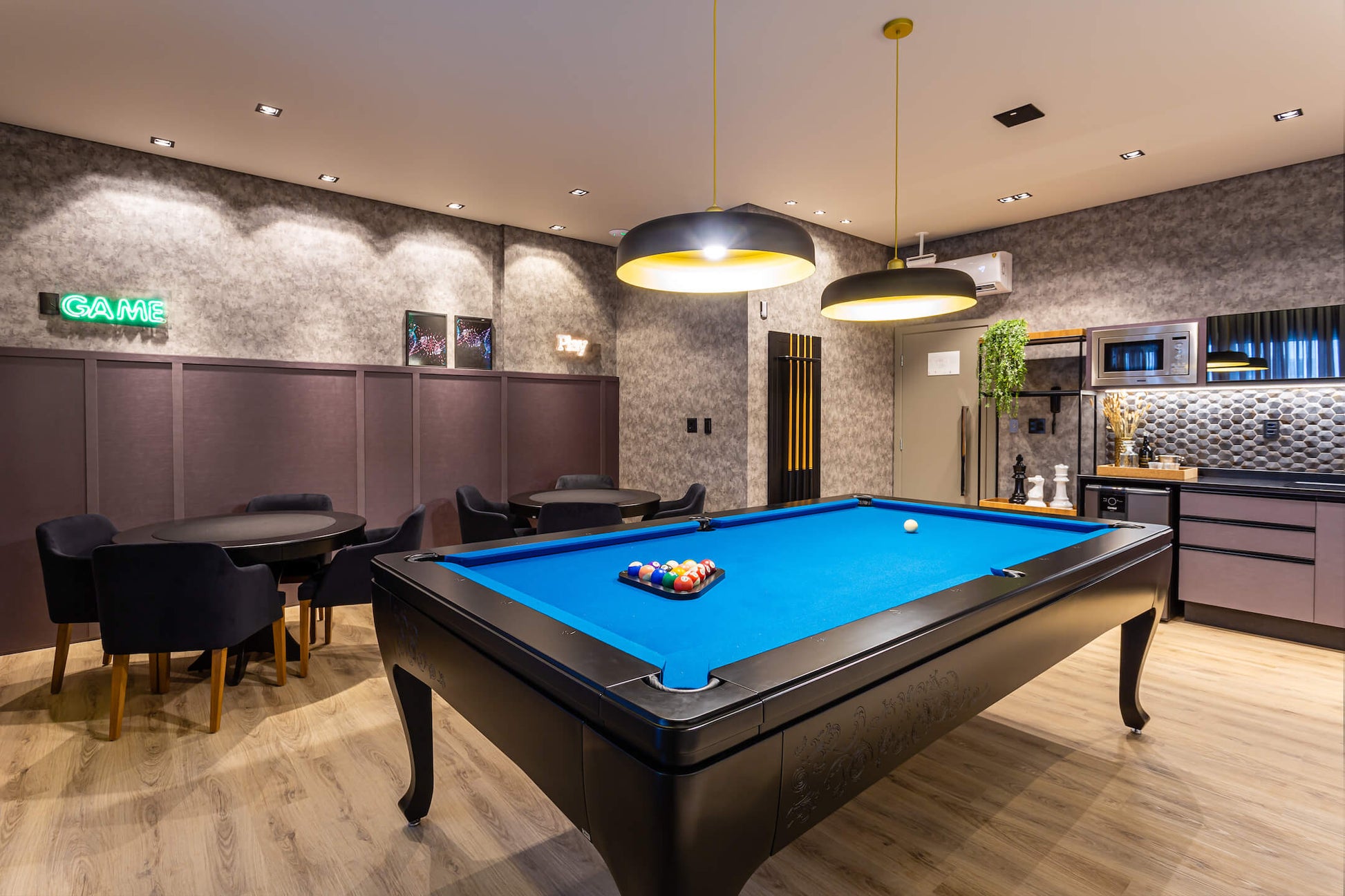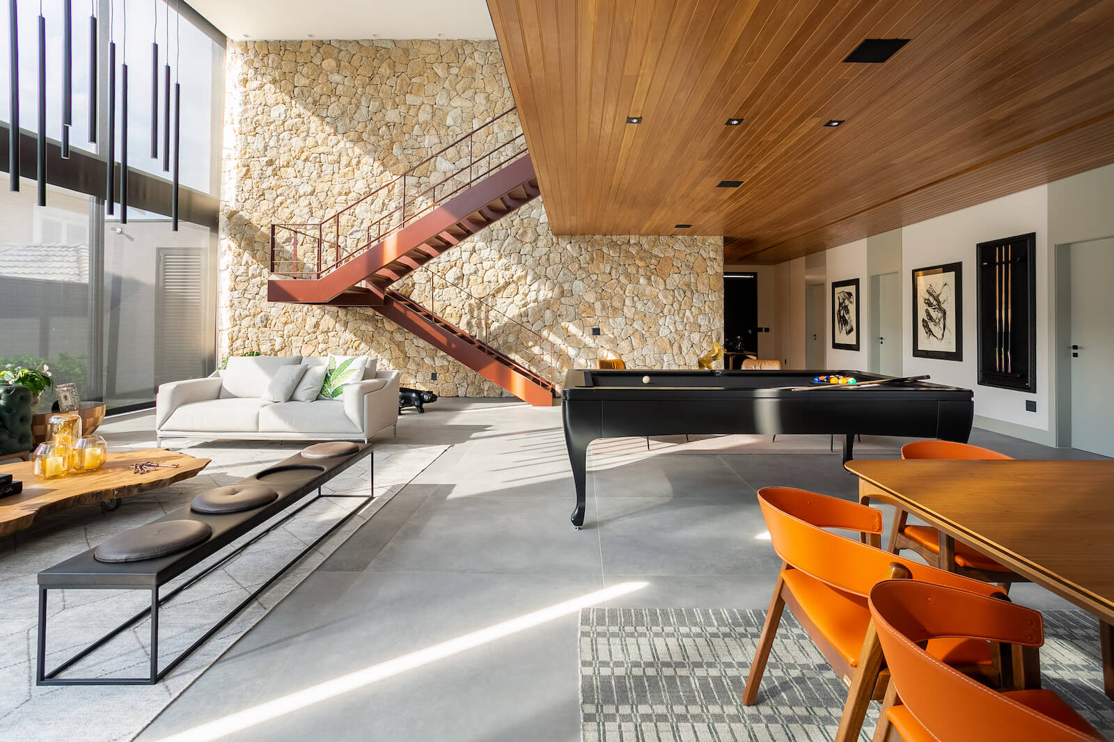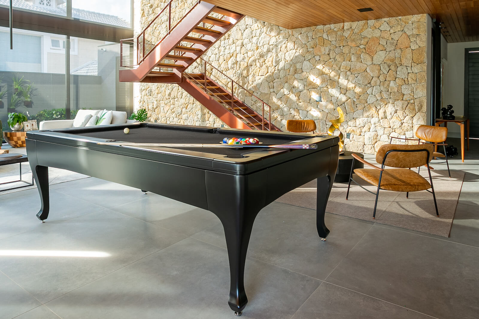 This remarkable pool table is made with all natural wood and is customizable in either high gloss or matte lacquer finishing. The designer, Larissa Batista, also curated a range of unique felt colors and patterns for your guests to lust over as they play over the table's slate stone surface.