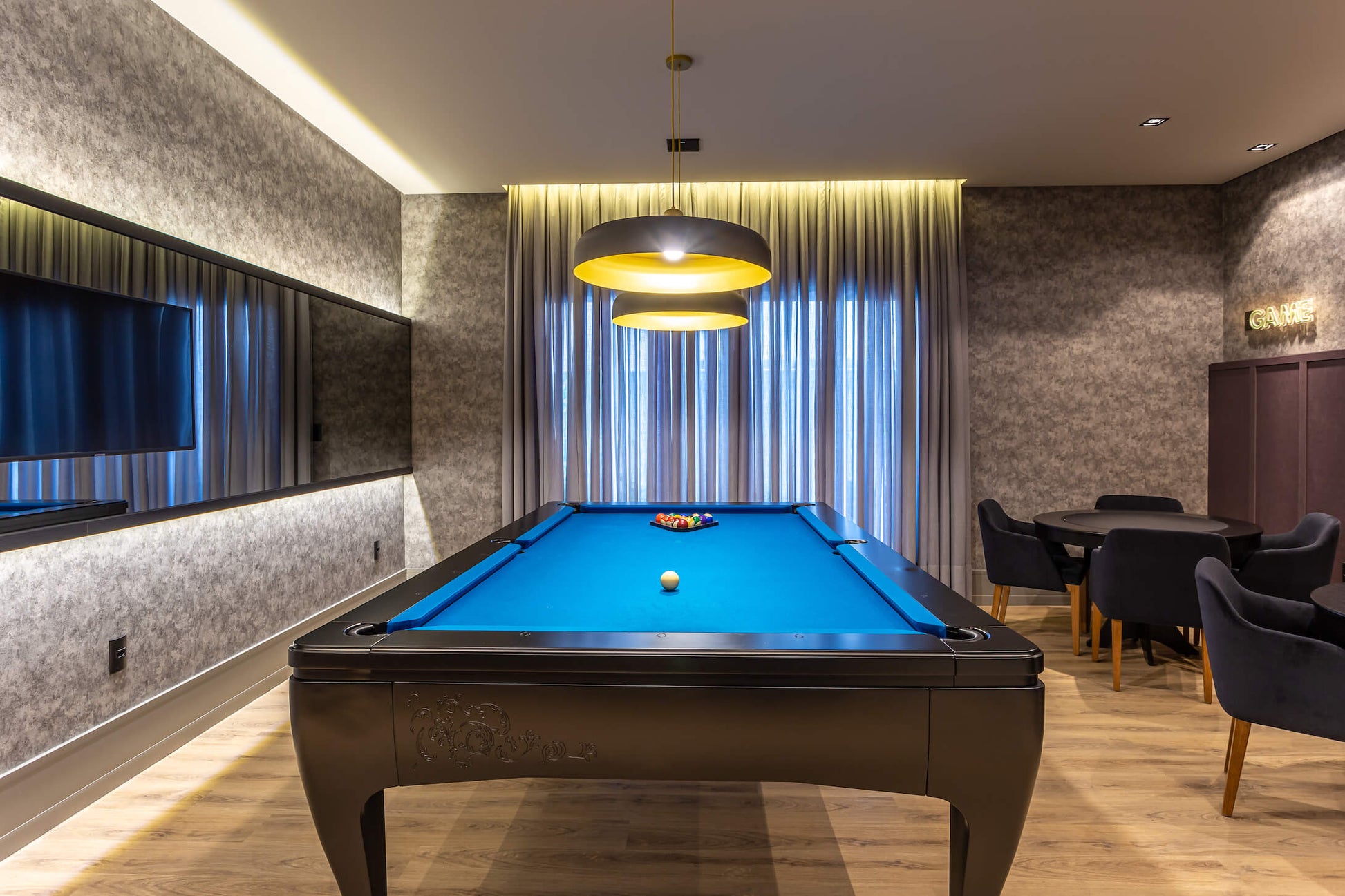 Our pool tables can be fully customized with your choice of lacquer, stain, as well as felt material and color to create your dream piece. You may also request a personalized laser engraving on the blinds (apron).