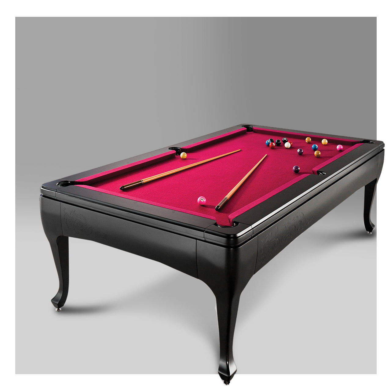 Our pool tables can be fully customized with your choice of lacquer, stain, as well as felt material and color to create your dream piece. You may also request a personalized laser engraving on the blinds (apron). We're always on standby to answer questions, send samples, and assist with custom orders.