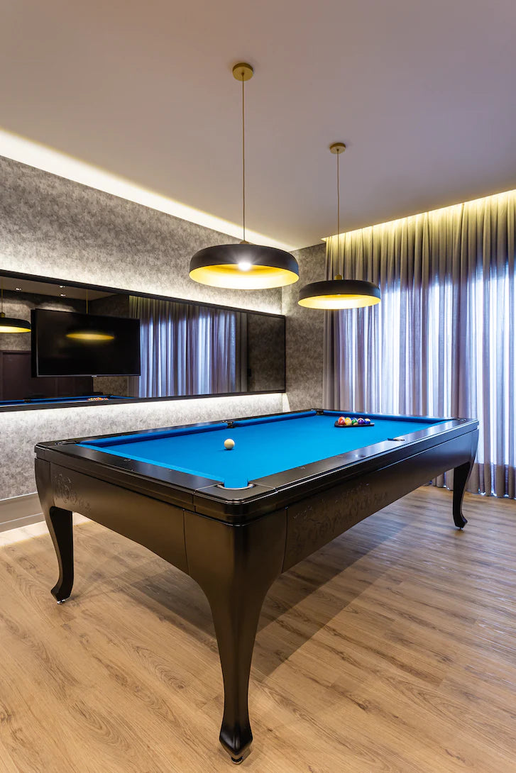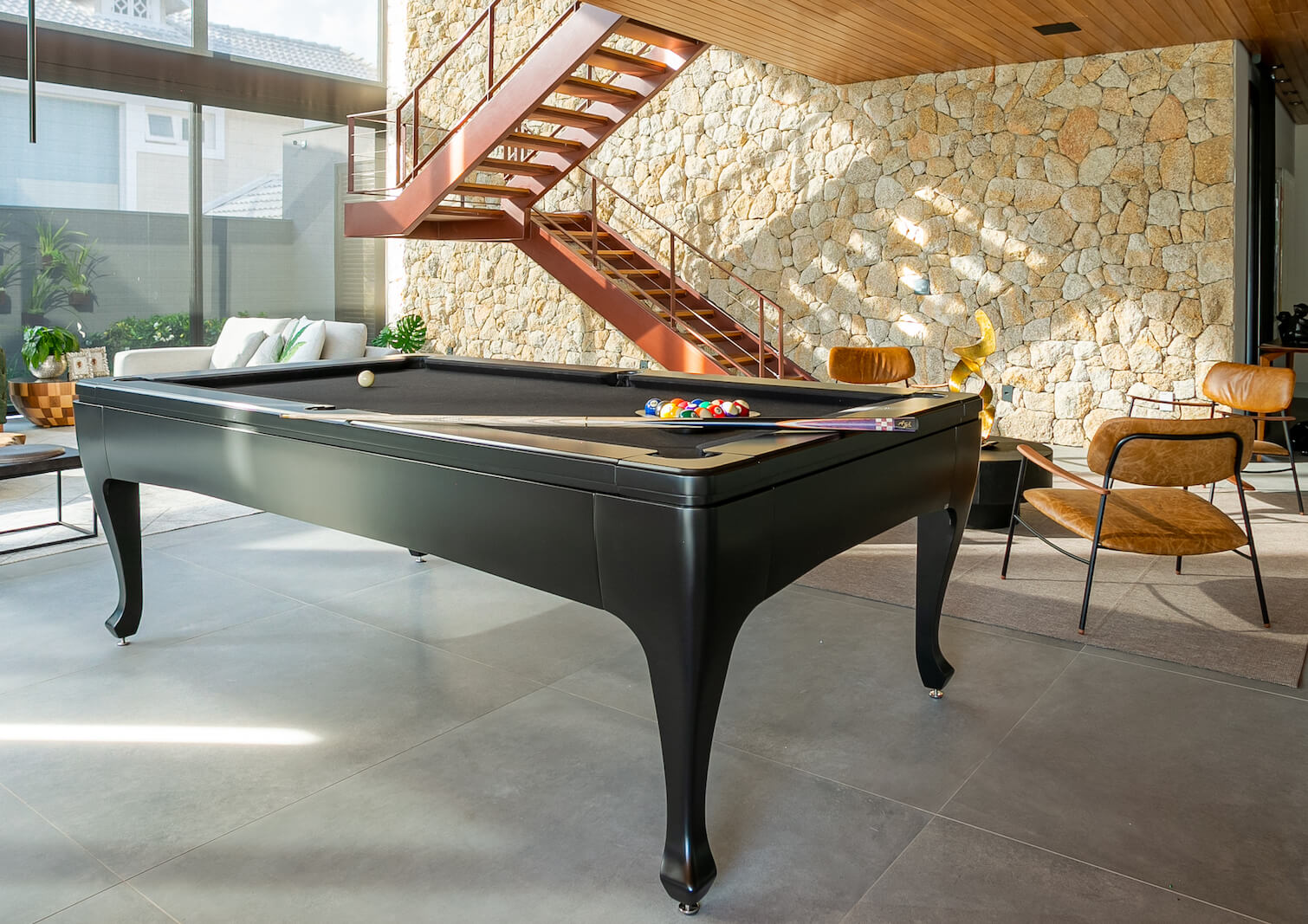 This remarkable pool table is made with all natural wood and is customizable in either high gloss or matte lacquer finishing. The designer, Larissa Batista, also curated a range of unique felt colors and patterns for your guests to lust over as they play over the table's slate stone surface.