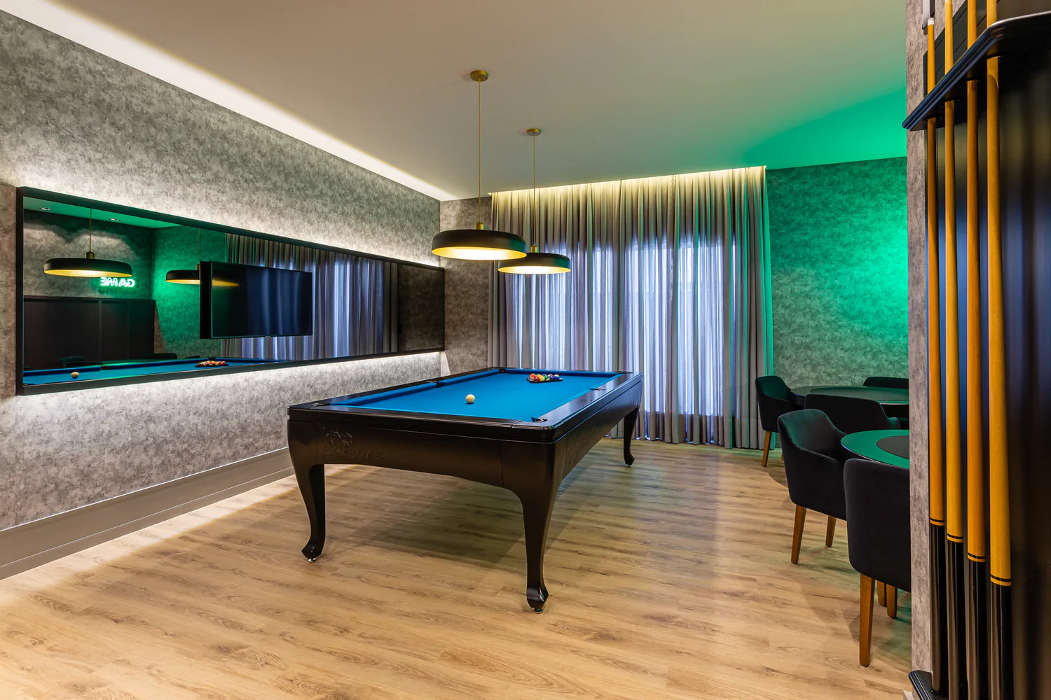 Handcrafted to show-off the spotlight of luxurious movie homes, the Milan billiards table is the pinnacle of elegance and beauty. Consistent in both form and function, it boasts glamour to any modern and contemporary interior.