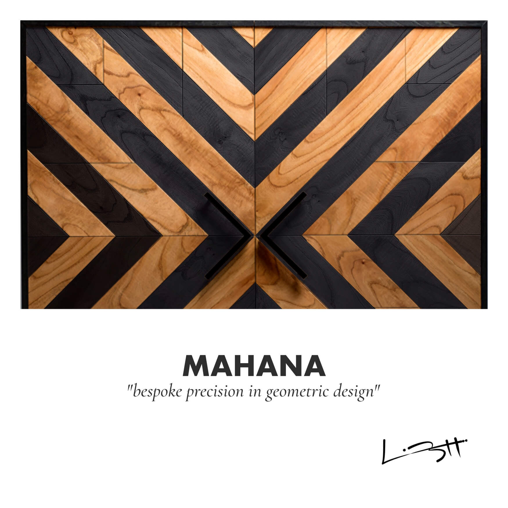 Created by international designer Larissa Batista and handcrafted by skilled woodworkers in one of our studio's factories, this contemporary piece is a home decor must-have. Fusing its mid-century modern design origin with the designer's characteristic tribal inspirations, this cabinet features a distinct natural wood finish in matte black and camphor-wood, which are complemented by the door's matching metal door knobs. Inside, warm LEDs illuminate the cabinet's ample storage space.