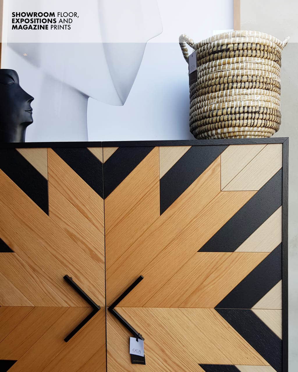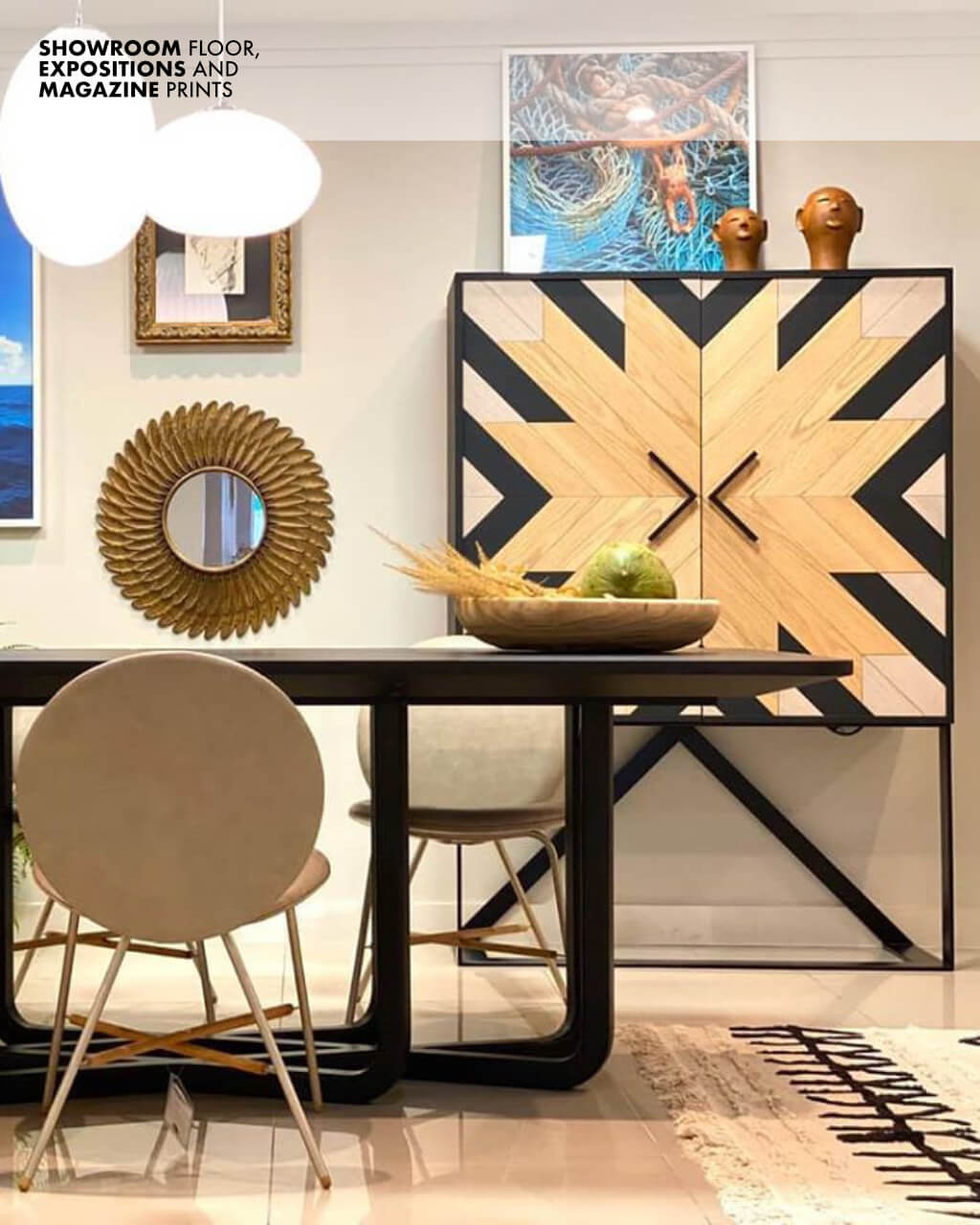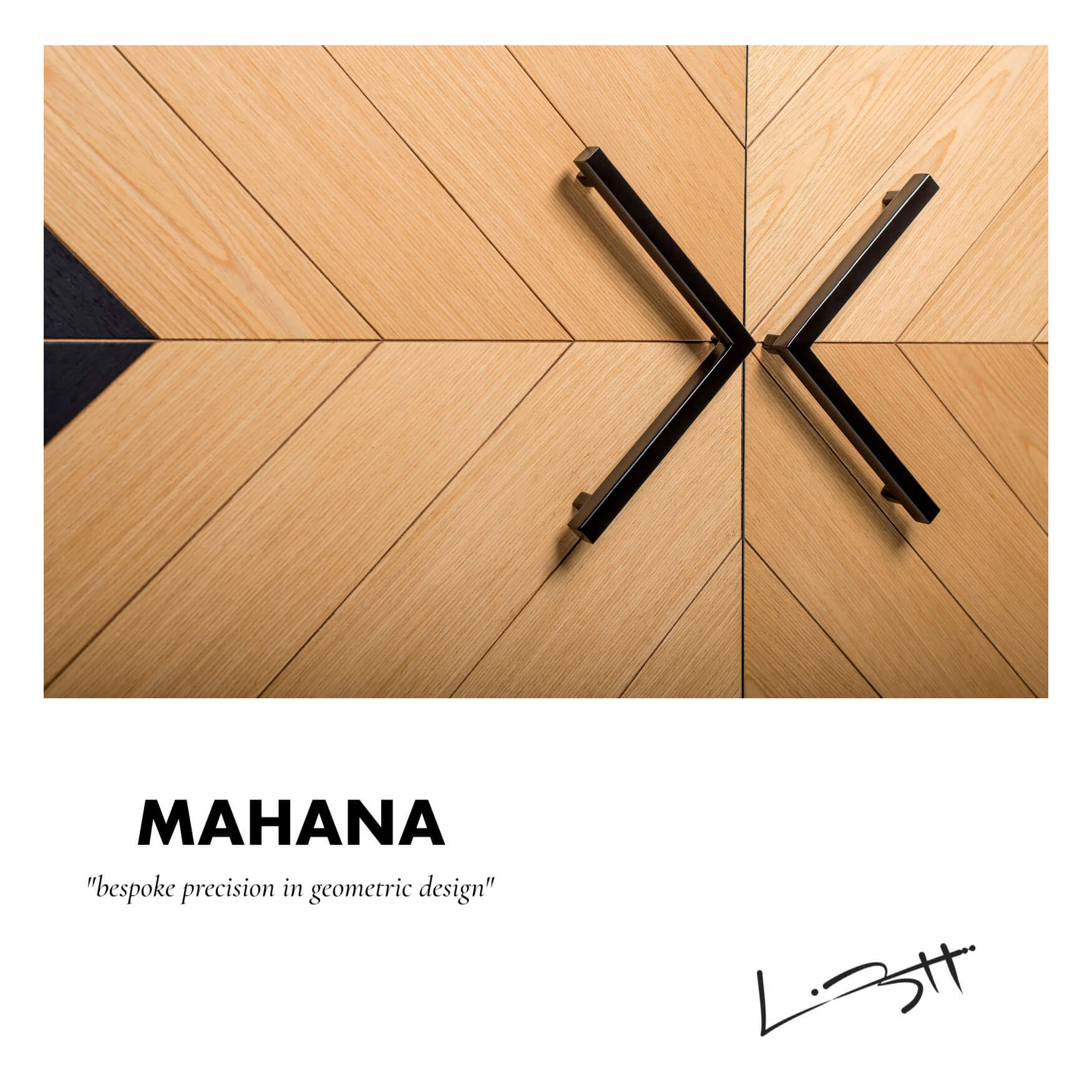 Created by international designer Larissa Batista and handcrafted by skilled woodworkers in one of our studio's factories, this contemporary piece is a home decor must-have. Fusing its mid-century modern design origin with the designer's characteristic tribal inspirations, this cabinet features a distinct natural, white and black oak finishes, which are complemented by the door's matching metal door knobs. Inside, warm LEDs illuminate the cabinet's ample storage space.