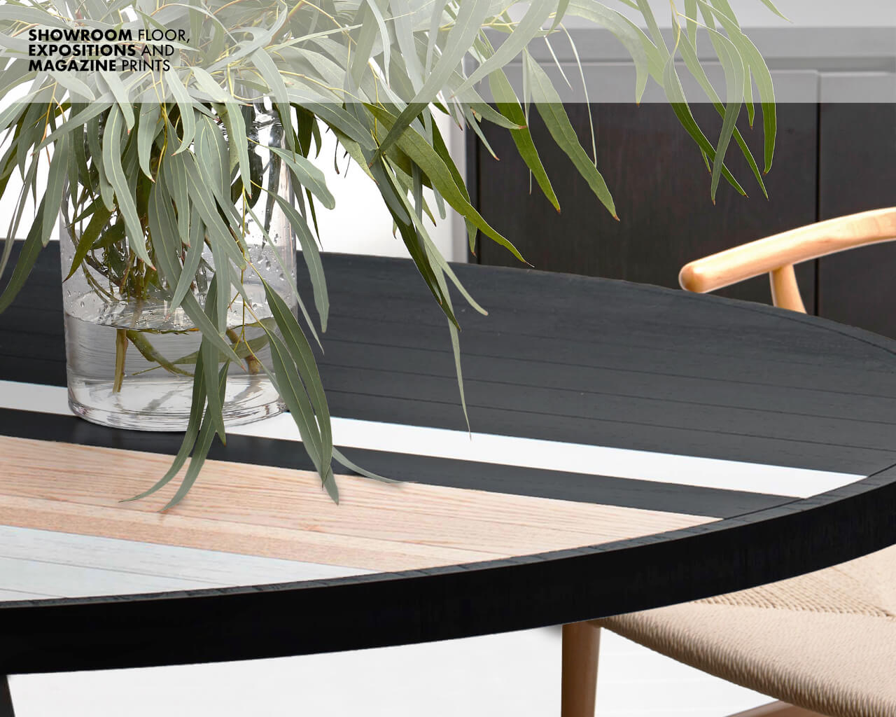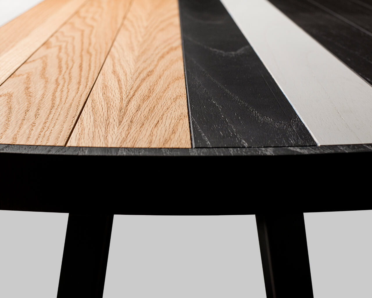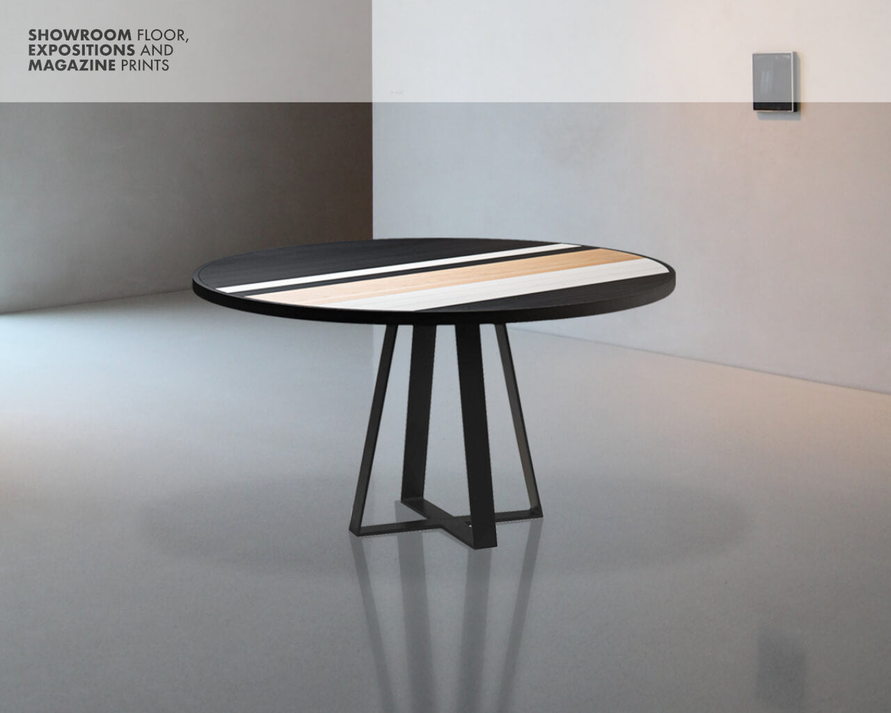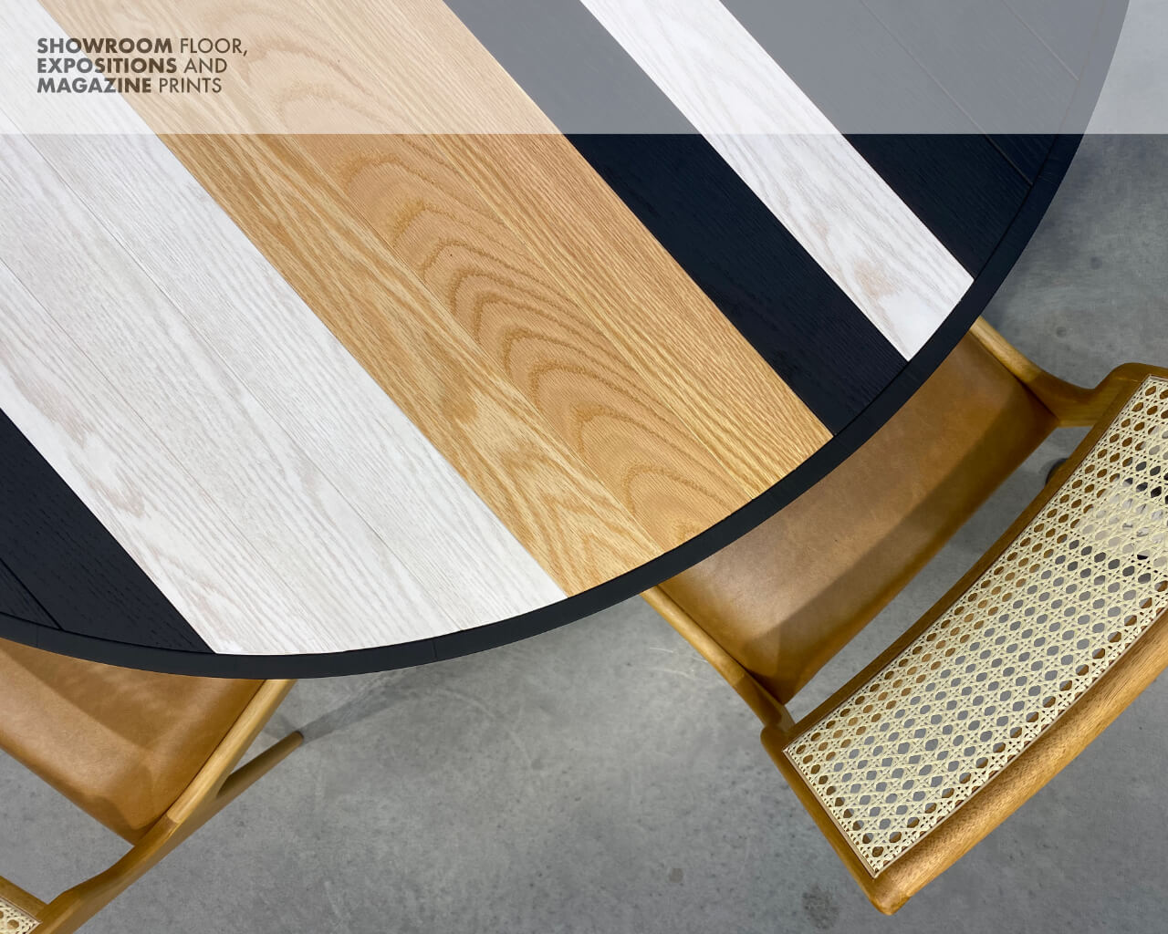 The six seater Soto Round Dining Table’s unique oakwood tabletop layout is the highest expression of Larissa’s modern take and inspiration on old-school marquetry, further manifested by the craftsman’s ability to hand-make each table from start to finish. A modern take on the table’s base with a triangular shape rounds out the look, making it an unmistakable design signed by Larissa Batista.
