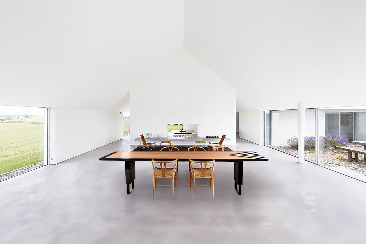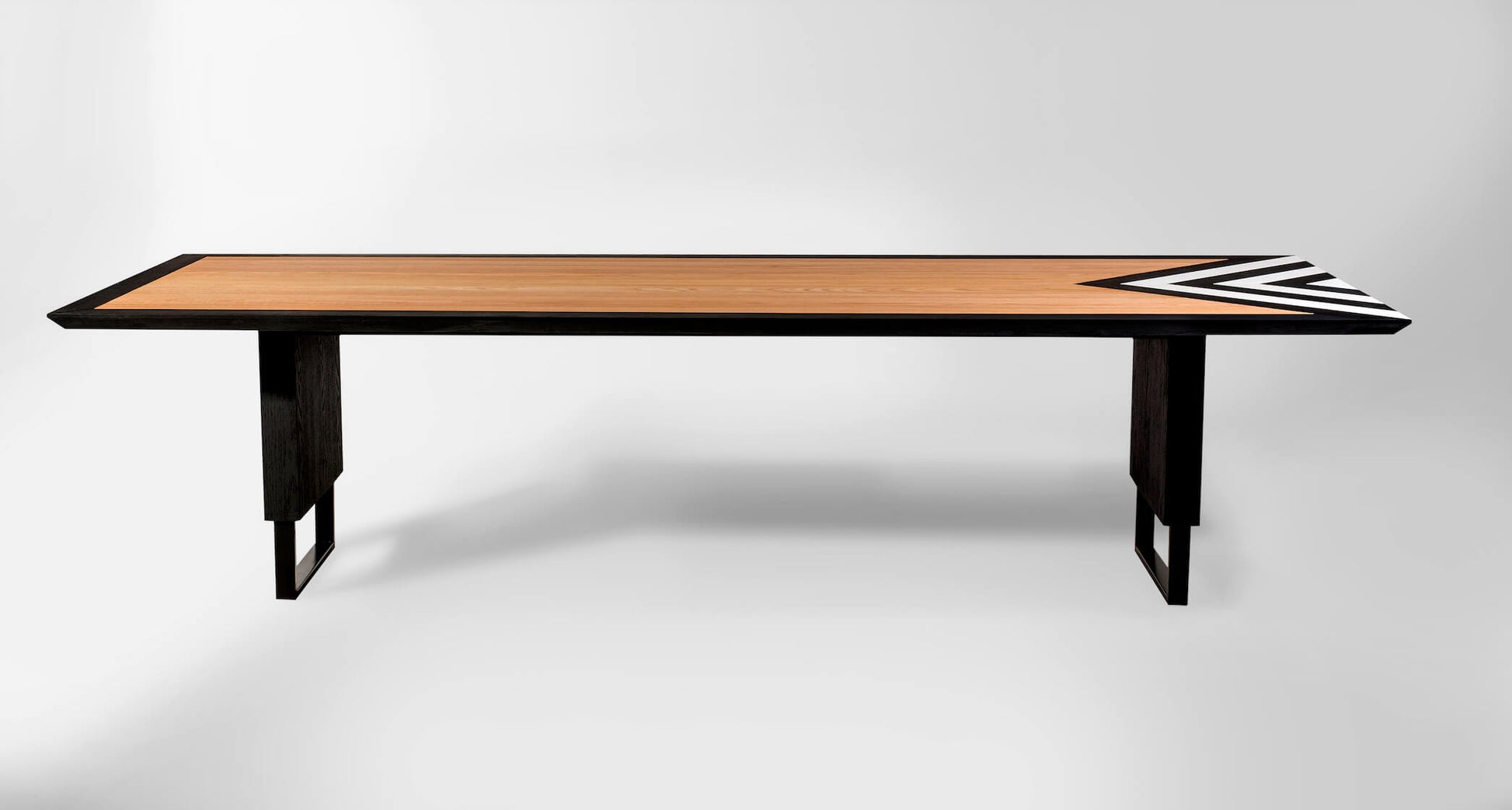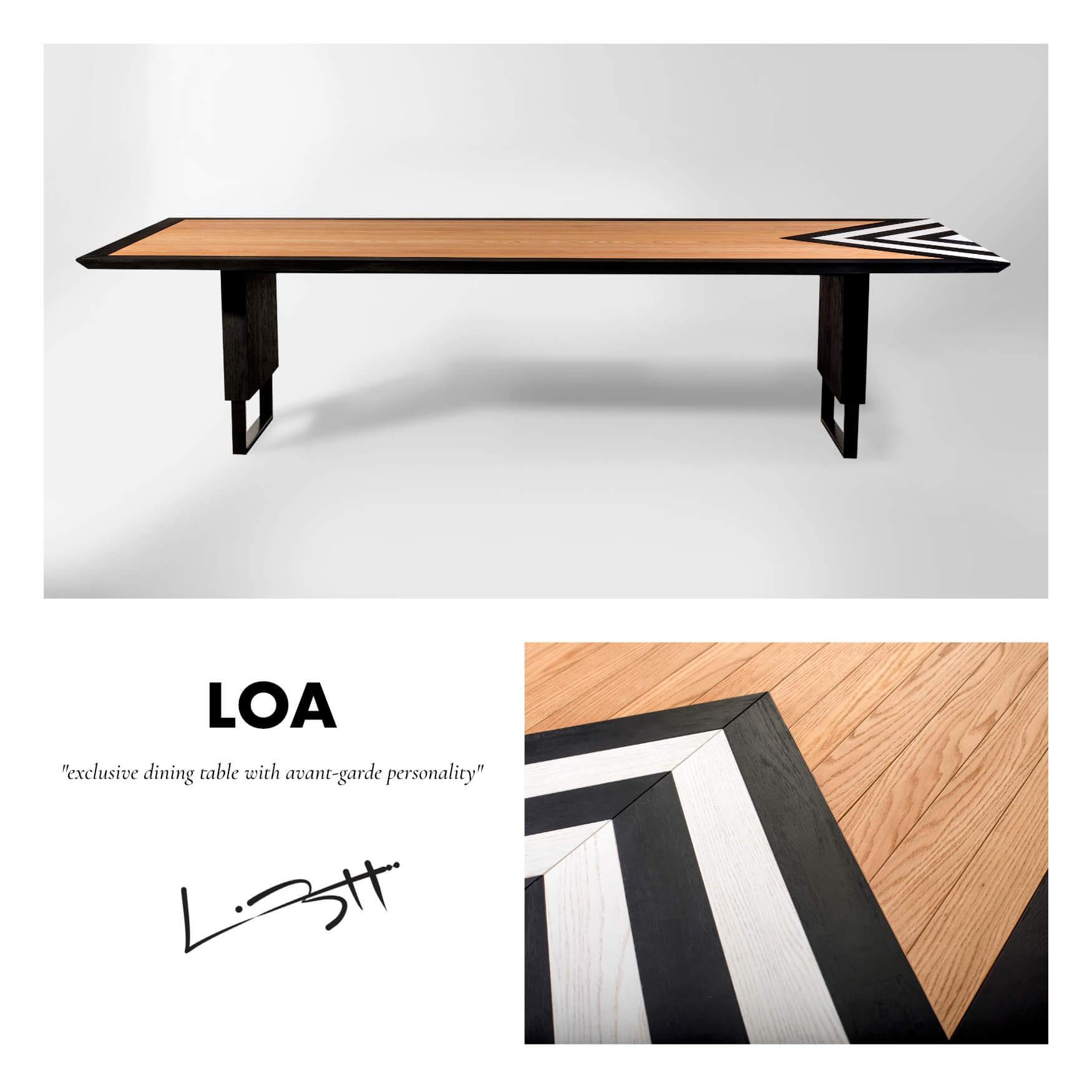 Loa’s elegant design often becomes the meeting point for families in day-to-day life. The table features contrasting wood elements handcrafted with traditional marquetry techniques in one of Larissa’s partner factories, where craftspeople work on it from start to finish with the utmost attention to detail. The incredible tabletop finish is enhanced by its sophisticated all-wood construction and metal base design.