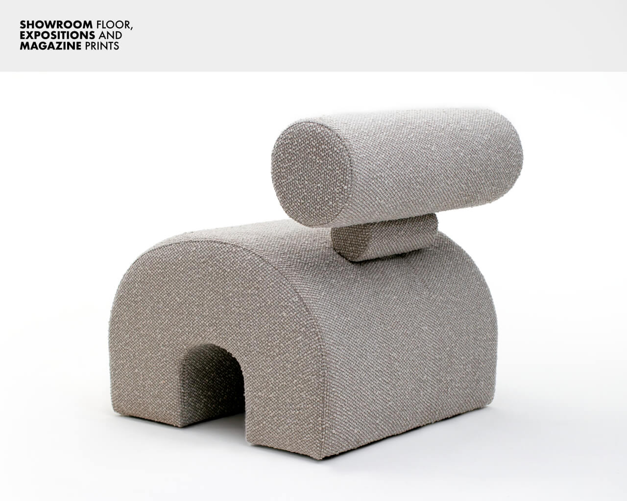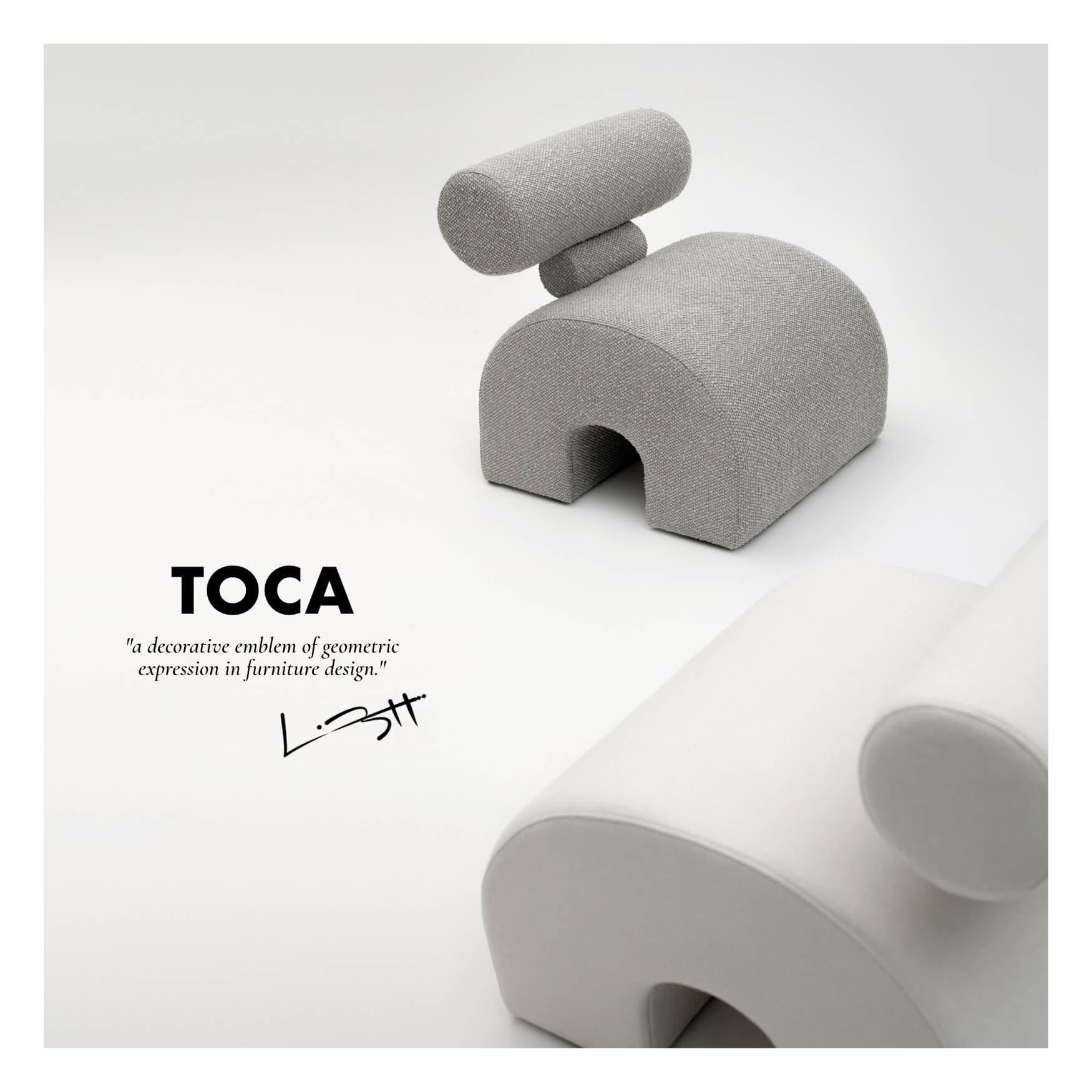Larissa Batista began designing the Jolly Seats Collection as an artistic depiction of early-20th-century’s Cubism movement. Eventually evolving into its own language, the Jolly Seats Collection came into fruition after gaining its own individually cheerful styling. The collection, currently composed of three pieces, marks the beginning of a new chapter in artistic upholstered furniture. "The Toca Lounge Chair is an emblem of geometric expression in furniture design", says the designer Larissa Batista. Allowing the piece to achieve such an iconic profile, beautifully balanced and simple shapes provide the item a unique aura while still granting the use a contemporary and wide mix of fabric and color options— novelties that offer a new and contemporary twist to timeless design.